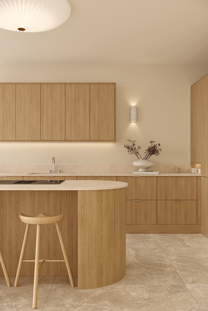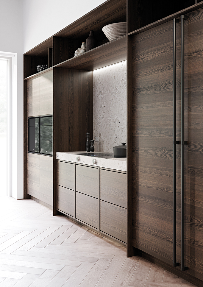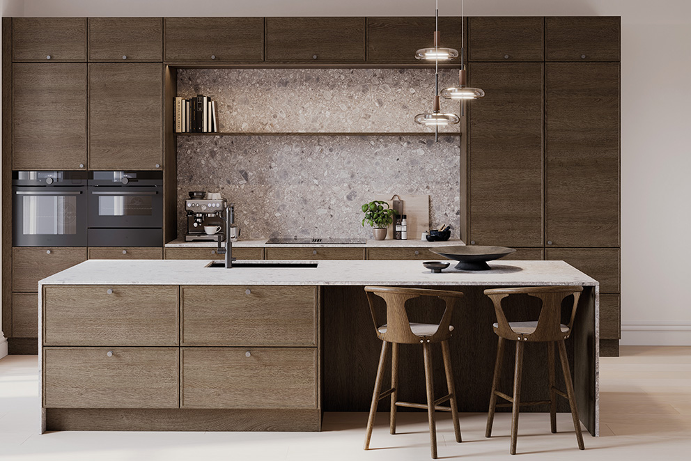– I dag ønsker de fleste seg lune hjem og kjøkken. Naturen er på full fart tilbake i moderne stil, gjerne med glatte flater med stående og liggende finer i kombinasjon med en kontrastfarge. Benkeplaten har også organiske mønster, som igjen gjenspeiler naturen, sier hun.
