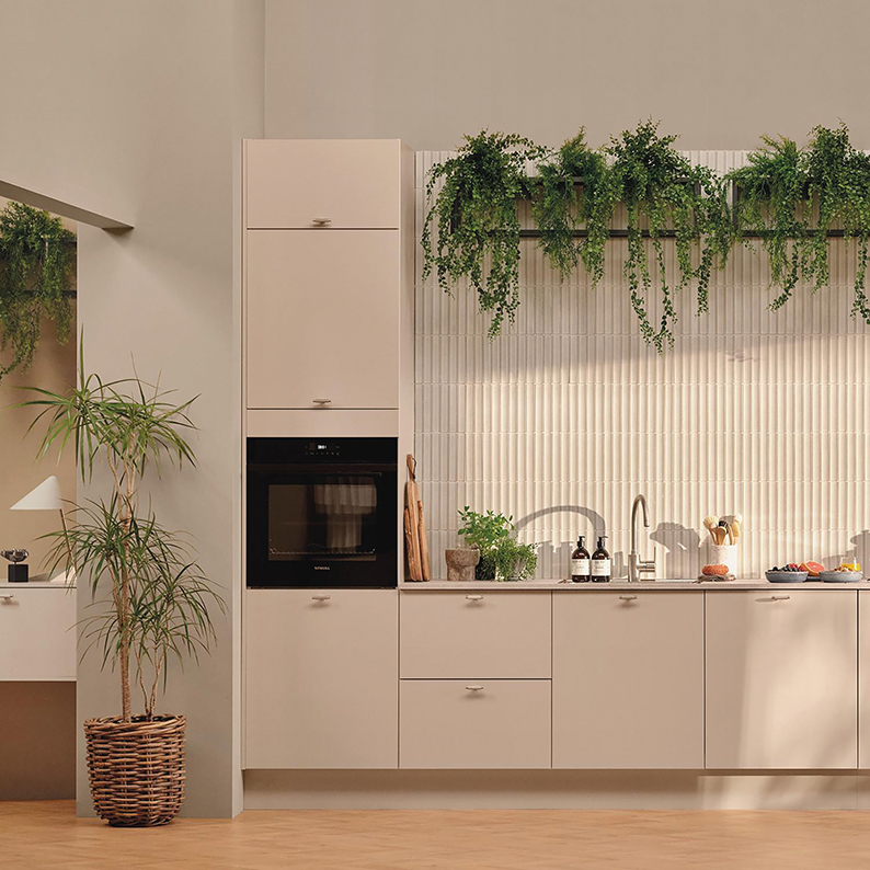 – I år viser vi stolt frem to ulike kjøkken inspirert av stemningen fra vårt nyeste konsept: Reflection. Den beige, rolige fargetonen kan lett matches med andre materialer og farger, sier hun. Konseptkjøkkenet er vist sammen med natur eik. Dette gjør uttrykket tidsriktig i forhold til trender, men det er også ment å vare lenge og innredningen er svanemerket.