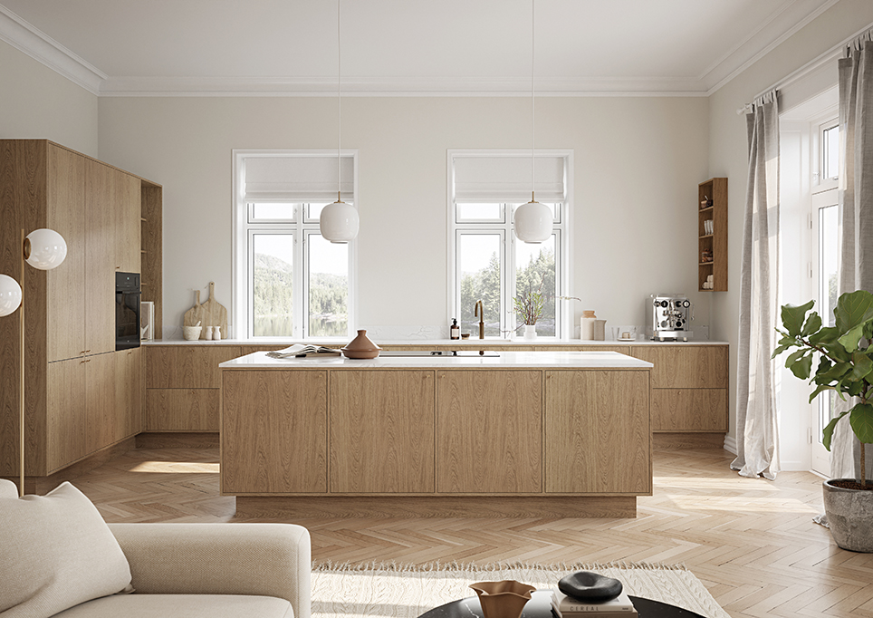 – Det er viktig å se rommets størrelse og bygge kjøkkenet funksjonelt. Tenk over hvor elementene skal plasseres, slik at hverdagen flyter godt, sier hun. Husk også at du skal leve lenge med kjøkkenet.